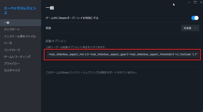 【最短】まずはこれだけ:起動オプション(黒帯なし+FOV120)