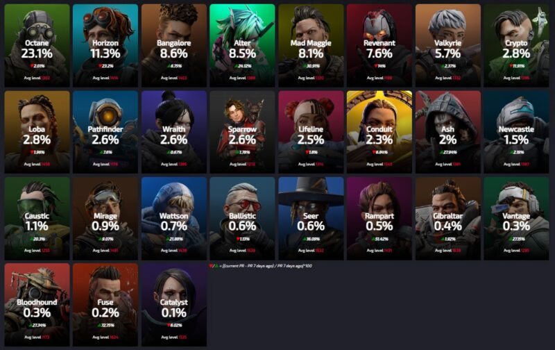 今回のアップデートでは上位2名のオクタンとさらに”ホライゾン”にも調整が行われました。