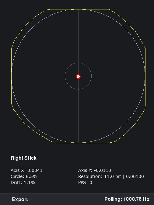 キレイに矩形を描いている所と、あとスティックのニュートラル位置を見てください。