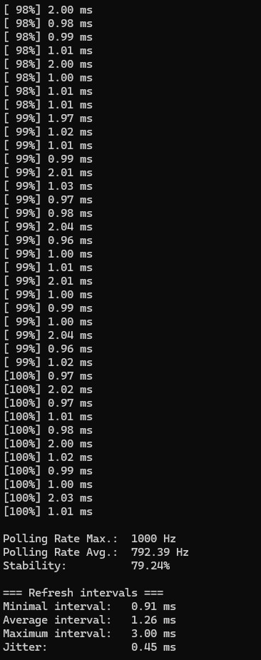 ポーリングレートは他社と比較して抑えめの1000Hz。