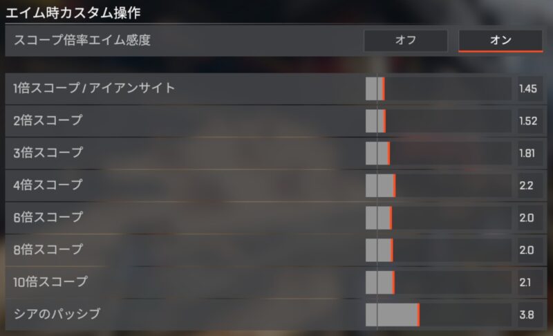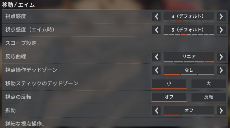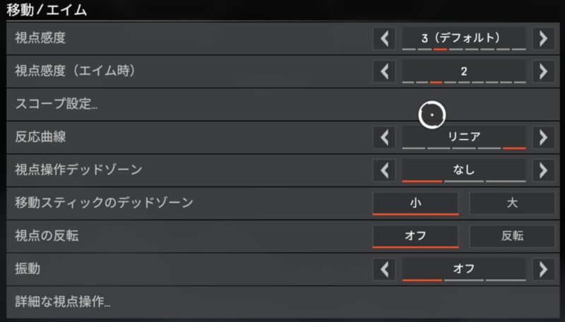 重要なのはAPEX内設定の視点感度ですね。