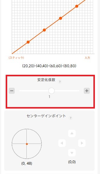 ② 「中心ゲインポイント」:スティックの”初動”を支配する