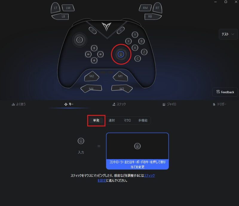 - スティック押し込みに連射やマクロ、多機能を割り当てる