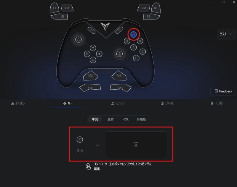 PADにキーボードアクション(画像ではYボタンにWアクション)を割り当てたりすると